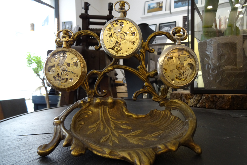 Les boitiers de montre de poche sont fabriqués à partir de métaux différents. Les montres sélectionnées sont en argent, laiton plaqué or ou bronze.